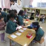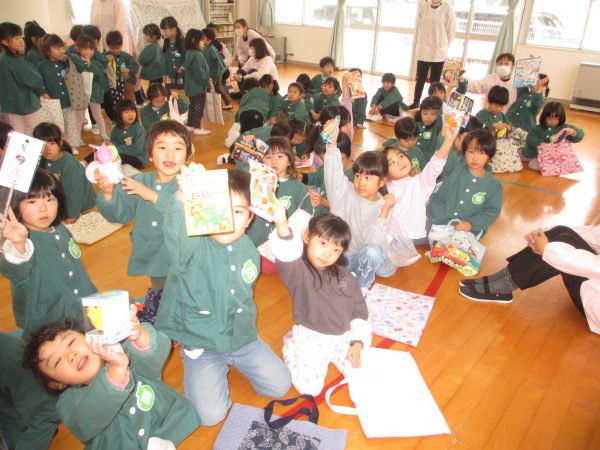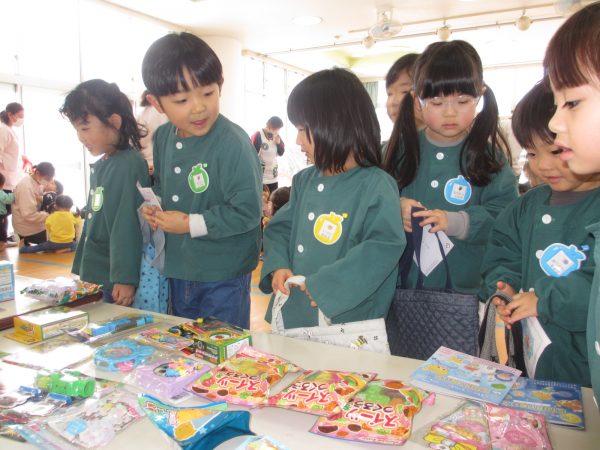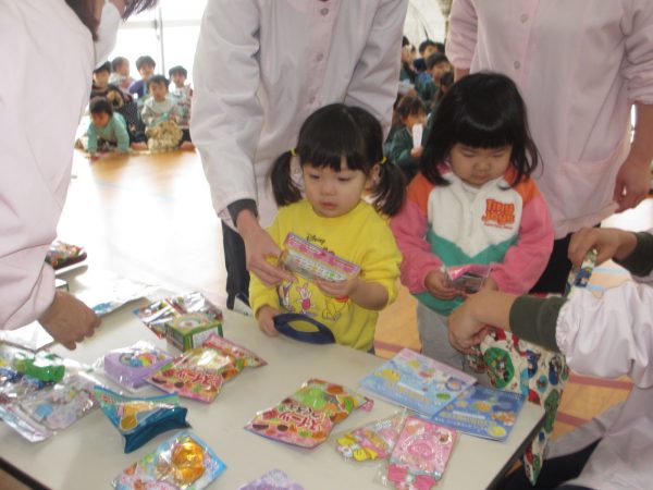 そして、1/29は郵便ごっこの抽選会でした。アタリのシールが付いたハガキを持って抽選会へ。自分のシールがいつ発表されるのか、ハラハラ!ドキドキ💖しながら祈っていた子どもたち。テーブルに並べられた沢山のおもちゃを見て、じっくり選んで決める子、サッと選ぶ子等様々でした。