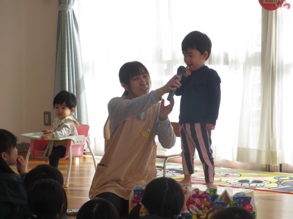 2月18日(水)2月生まれのお誕生会があり、5名のお友だちがお祝いしてもらいました。