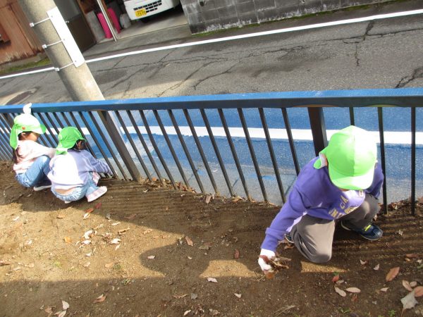 最後にきれいになった園庭を見て、「これで気持ちよく遊べるね」と達成感でいっぱいの子どもたちでした😊