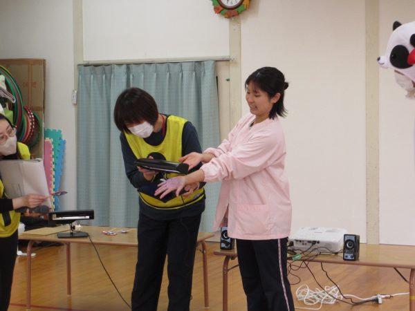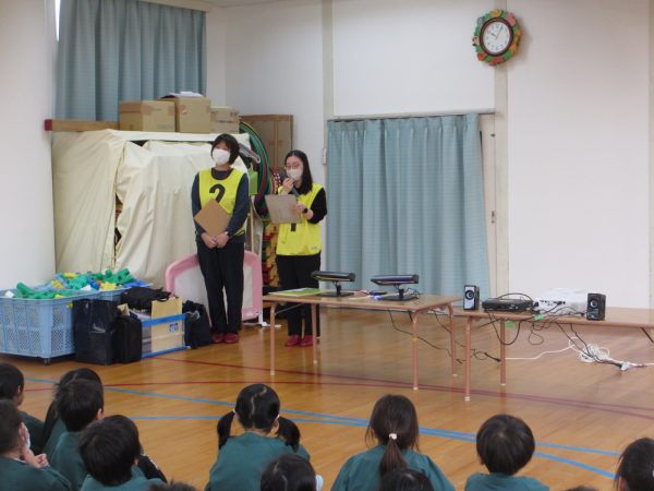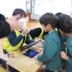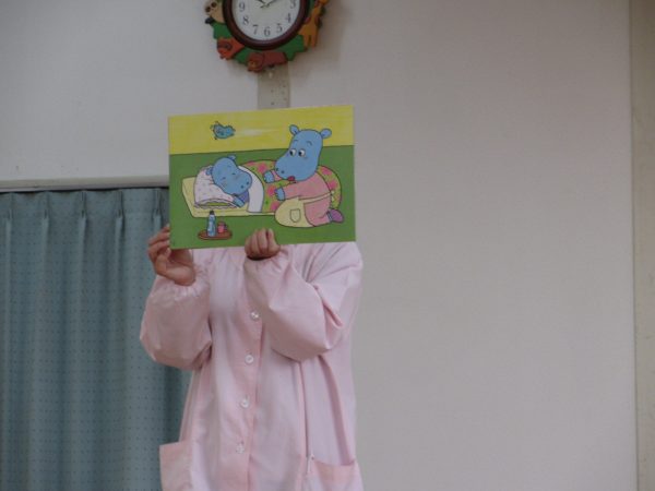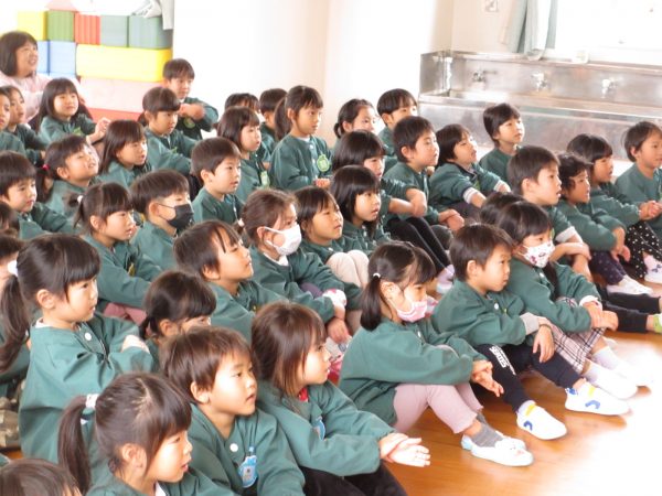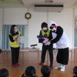 12月8日(月)、3・4・5歳児が『わんぱく手洗い教室』に参加しました。柏崎市食品衛生協会の方が枇杷島保育園に来てくれて、バイキンがいなくなる手の洗い方を教えてくれました。