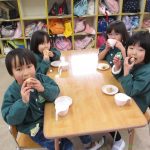 肉まんは、調理員がふかしてくれて3時のおやつに皆で食べました。ほんのり甘い生地の中に具のシュウマイがマッチしてとても美味しかったです。ひまわり組さんありがとうございました。