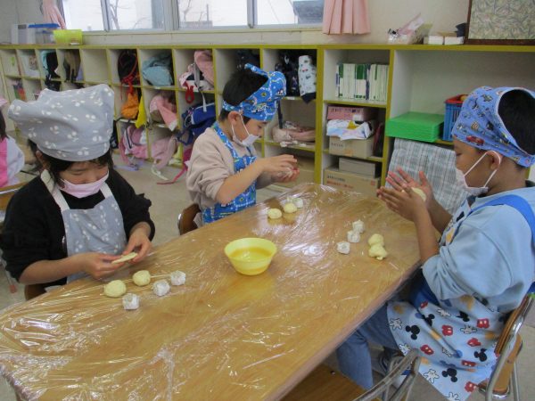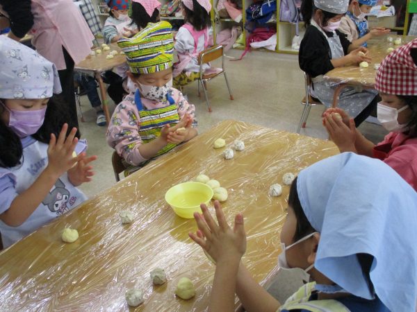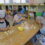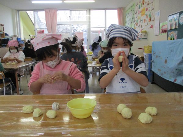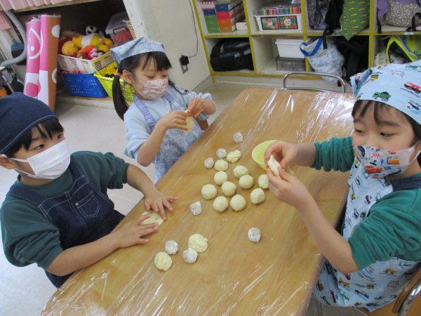1月8日(木)ひまわり組が3時のおやつの肉まん作りをしました。