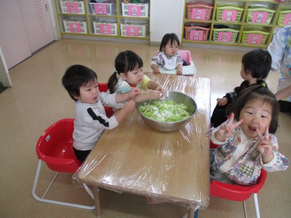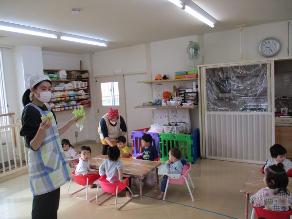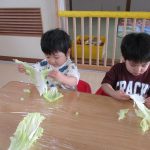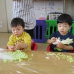11月11日(火)に食育活動の白菜ちぎりをしました。