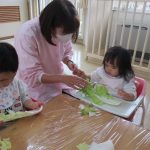 ビリビリちぎって楽しむ子、ドキドキしながら触る子、先生と一緒にやってみようとする子それぞれの様子が可愛らしかったです❤