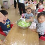 「菊の花びらはあまり味がしないな~」という子もいましたが、大好きなのり酢あえに入っていた菊の花びらは「シャキシャキしていて美味しかった!」と、とても好評でした。楽しい花びらとりでした。
