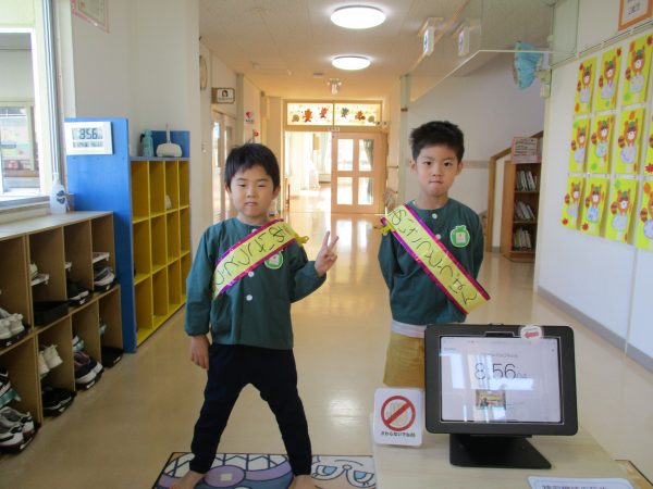 小学校に向けて、挨拶当番や部屋の雑巾がけの取り組みも始め、順番がくることを楽しみにしながら日々過ごしています!