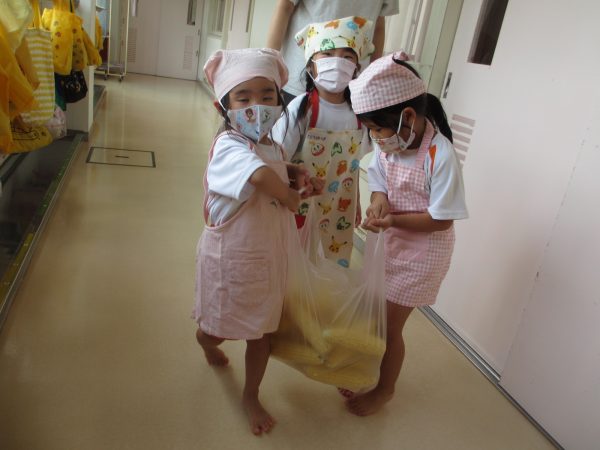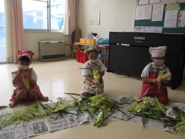 8月19日(火)にばら組がとうもろこしの皮むきをしました‼