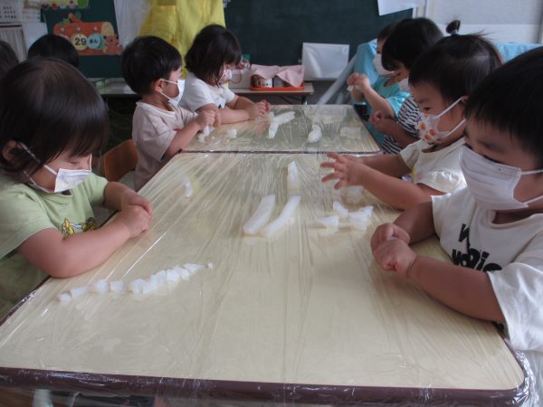 大きくなったら何になりたいですか?のカードを引いたひまわり組のお友だちは、「いっぱいあるよ‼お菓子屋さん。ケーキ屋さん。アイス屋さん。蔦屋の人・・・」と教えてくれました。夢が叶うと良いですね😊