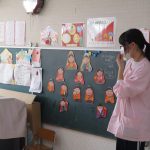 給食の先生のお話を聞いて、やり方を教えてもらいました☺