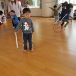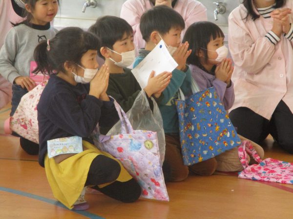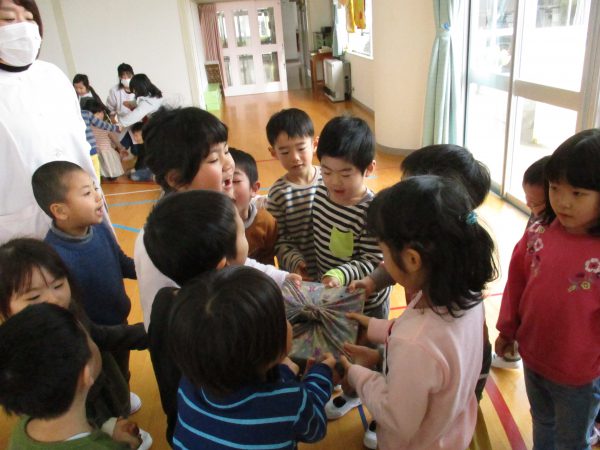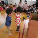 トキちゃんクラブが中止になり、先生が交通安全のお話をエプロンシアターで教えてくれました。