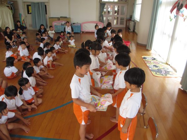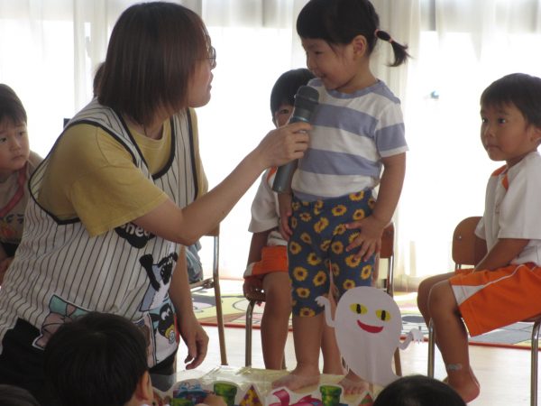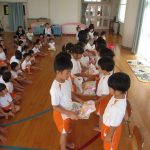 8月29(金)にすみれ組が食育活動でこんにゃくちぎりをしました。