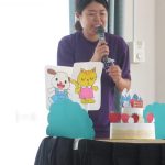 担任の先生からこんにゃくを見せてもらったり、ちぎり方を教えてもらった後、子どもたちも挑戦してみました。